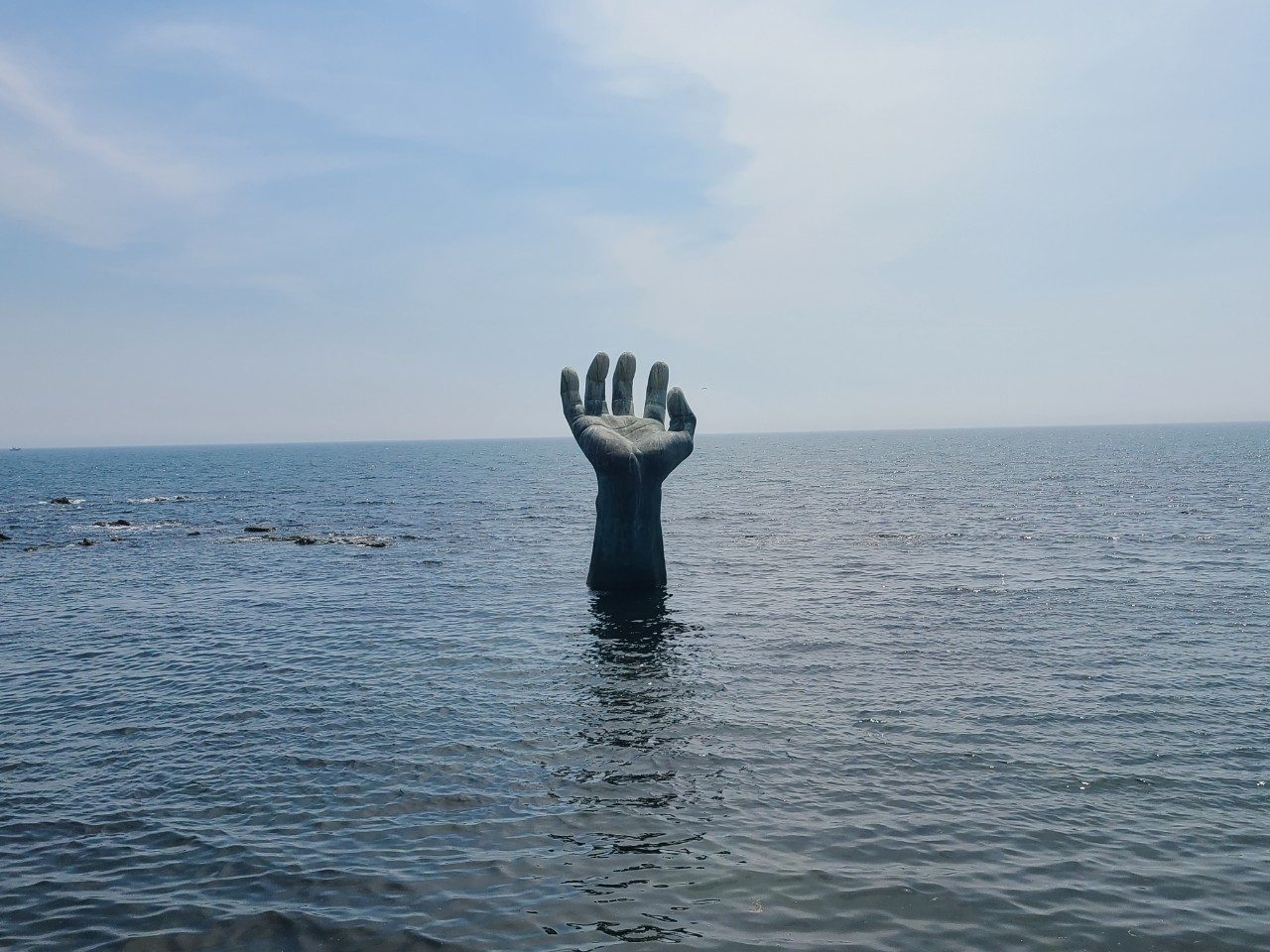 육지에선 왼손, 바다에선 오른손인 상생의 손은 새천년을 맞아 모든 국민이 서로를 도우며 살자는 뜻에서 만들었다고 해요. 새천년을 맞아 화해와 상쇄의 기념정신을 담고 있다고 합니다.