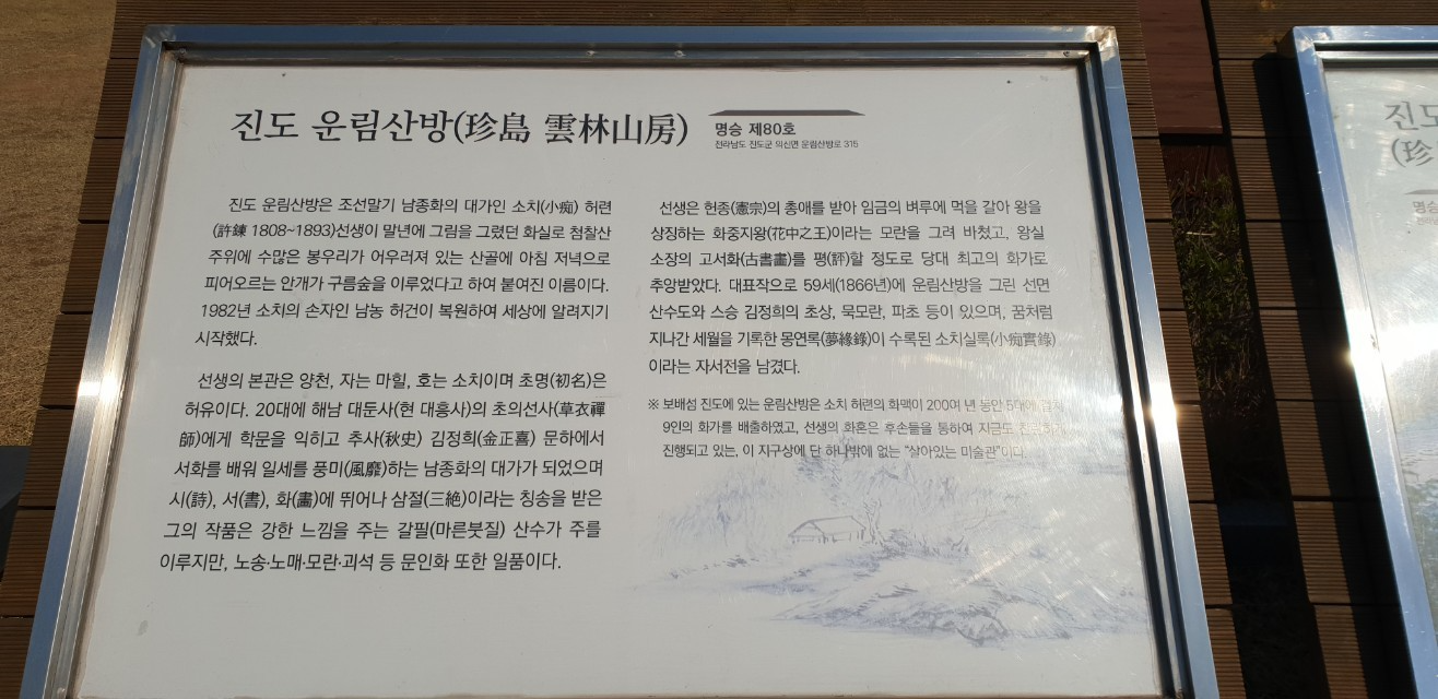 운림산방은 국가가 지정한(제80호) 명승지입니다.
