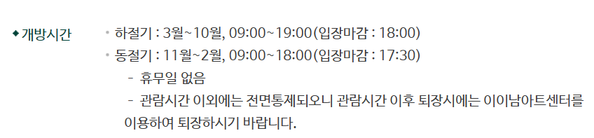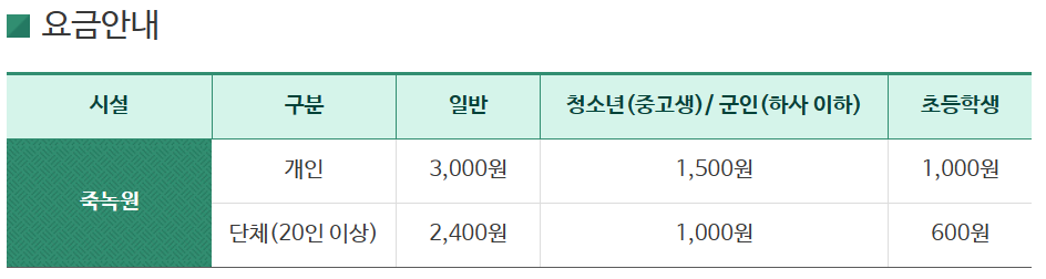 죽녹원 운영시간과 입장료입니다.