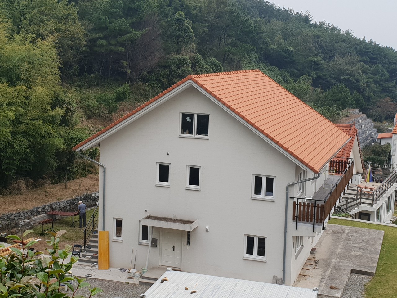 정원이 참 아름답네요. 남해의 바다와 독일마을의 붉은 지붕이 조화롭습니다.