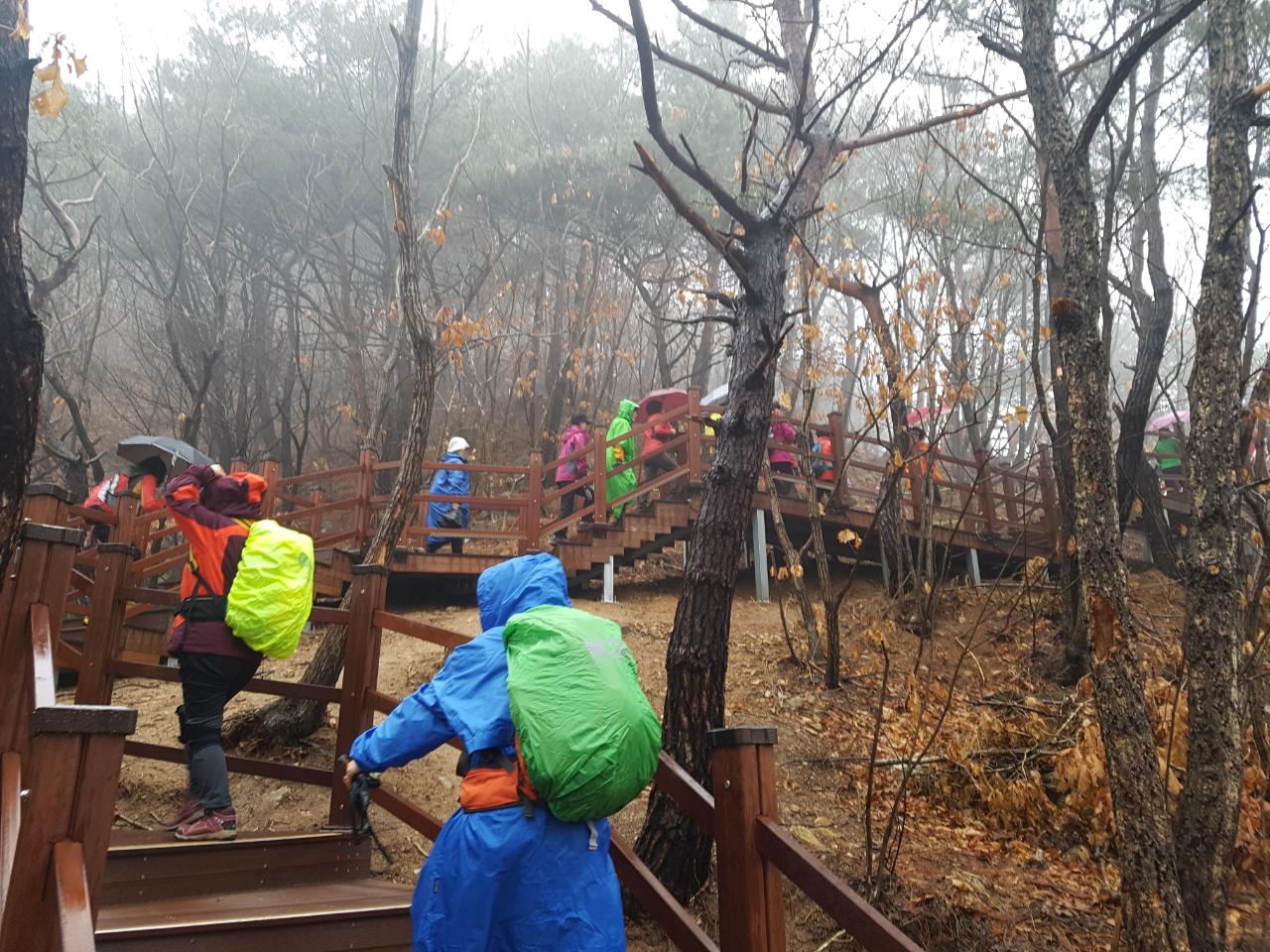 출렁다리까지 도달하기 위해서 올라야 하는 나무 계단입니다.