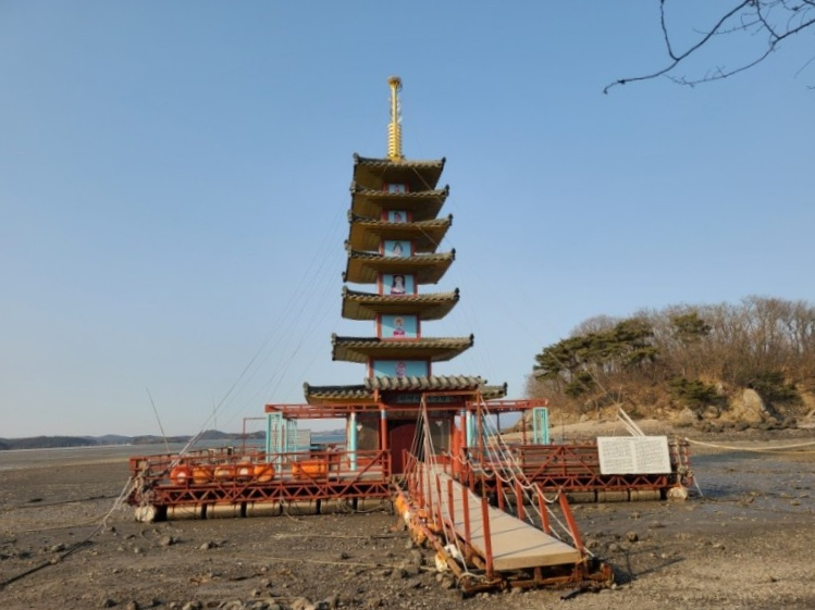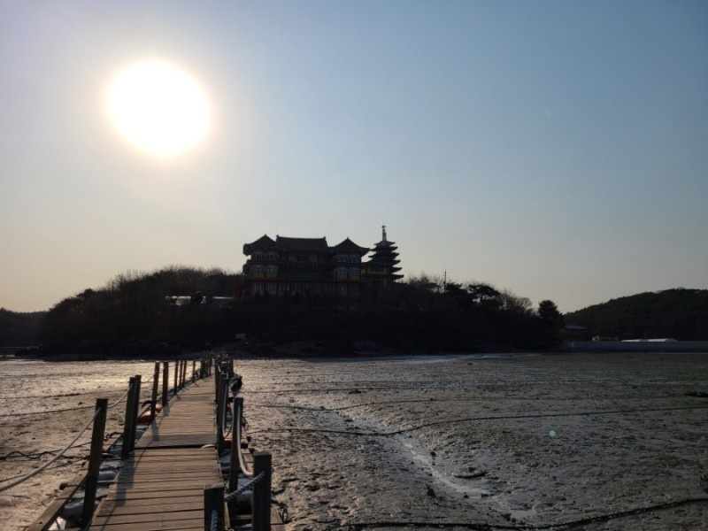 갯벌에서 바라보는 안면암의 풍경이 참 아름다우니, 태안에 가보신다면 안면암을 꼭 방문해 보세요.