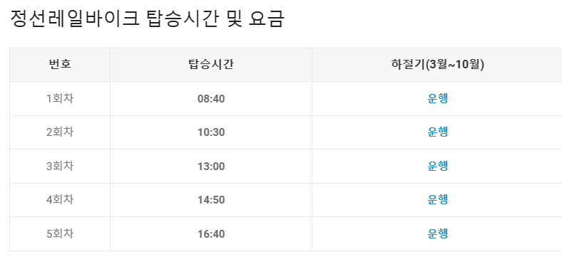 구절리역에서 출발해서 아우라지역까지 7.2km를 운행하는 철길 자전거예요 :)