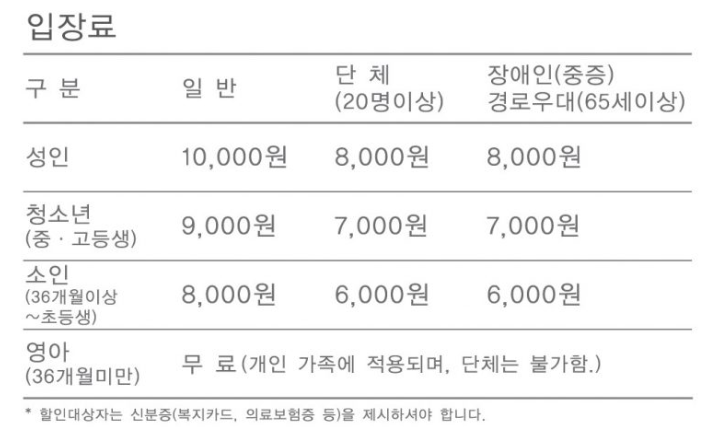 입장료는 이렇게 됩니다.