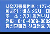 (주)버스25시 | 대표이사 김중배 | 경기도 하남시 대청로 26, 703 (신장동, 현대리빙텔) 대표번호 1566-7929 | 사업자 등록번호 : 126-86-56926 | TEL : 010-4309-0082 | Mail : kjb60kjb@hanmail.net | 통신판매신고번호 : 제 2016-경기양평-0140호 | 사이버몰의 이용약관 바로가기