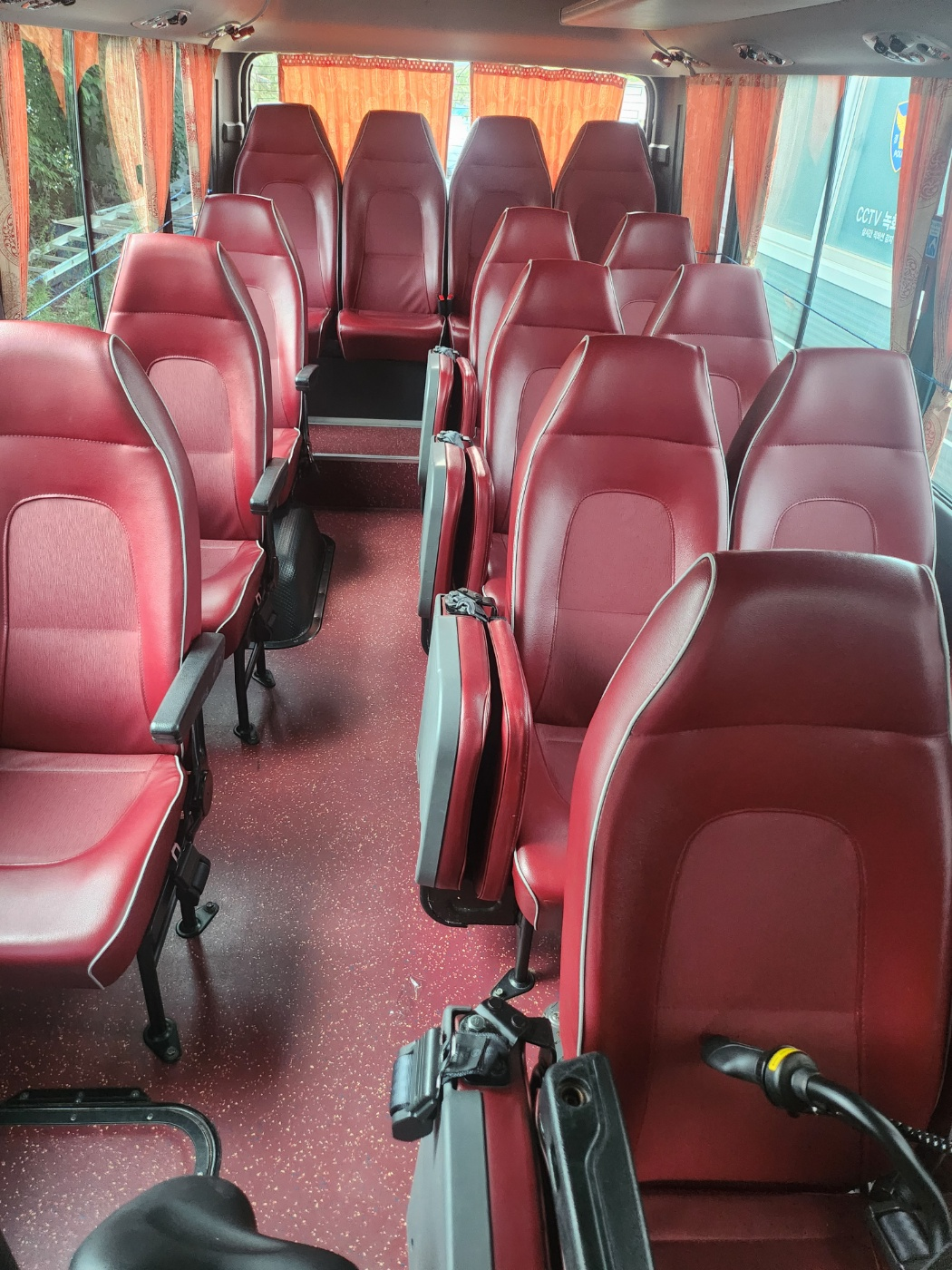 저렴한 가격. 현가장치가 달려서 승차감이 좋습니다. 18명까지 승차 가능합니다.