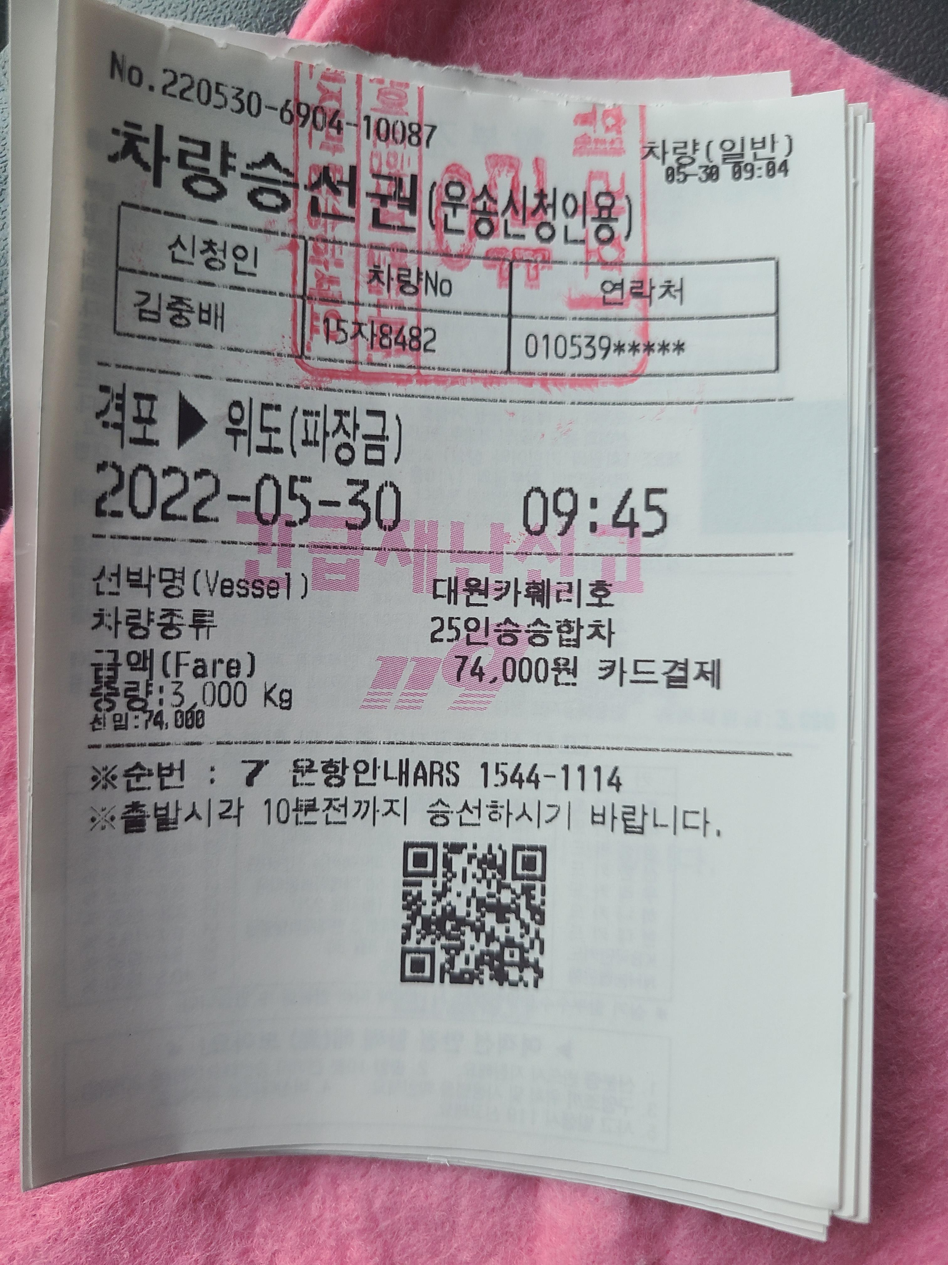 위도 선착장도착 약50분정도 소요