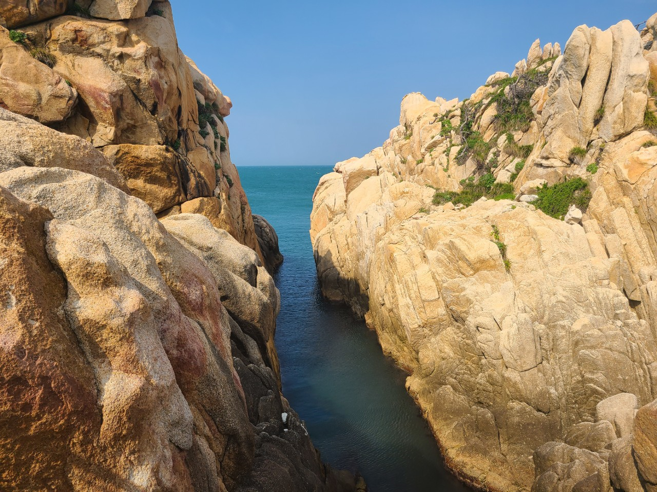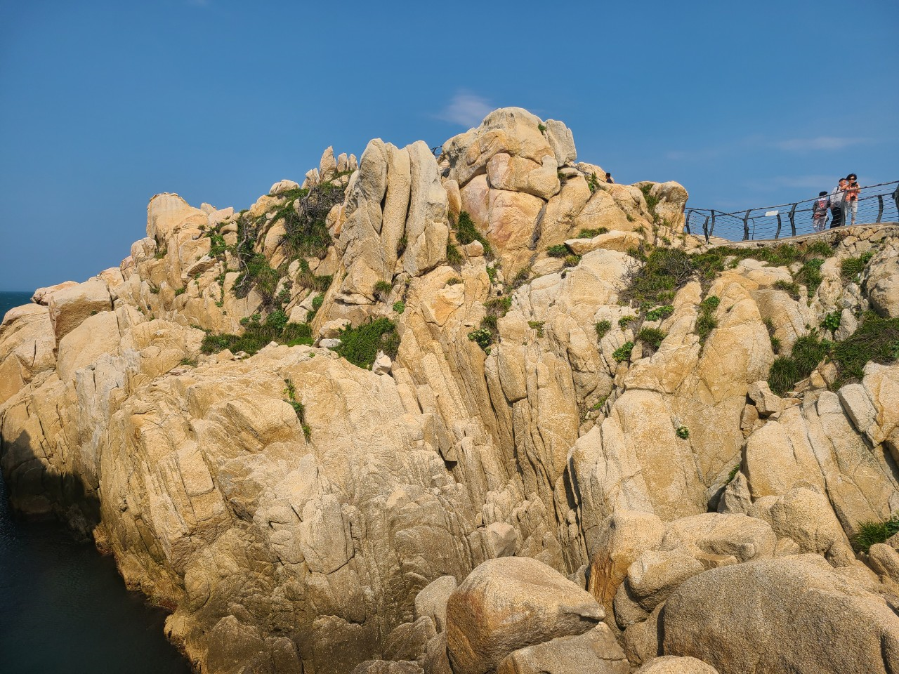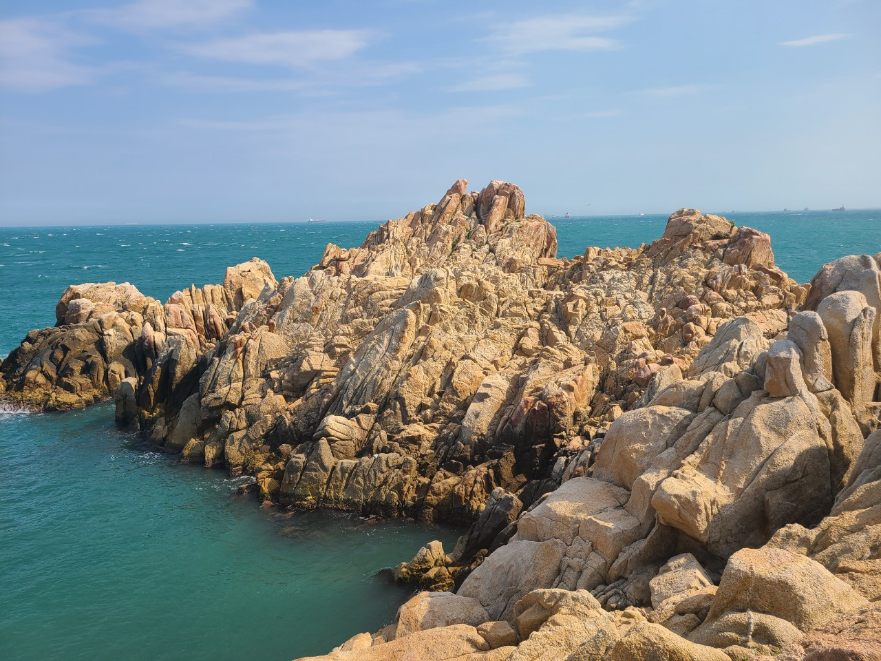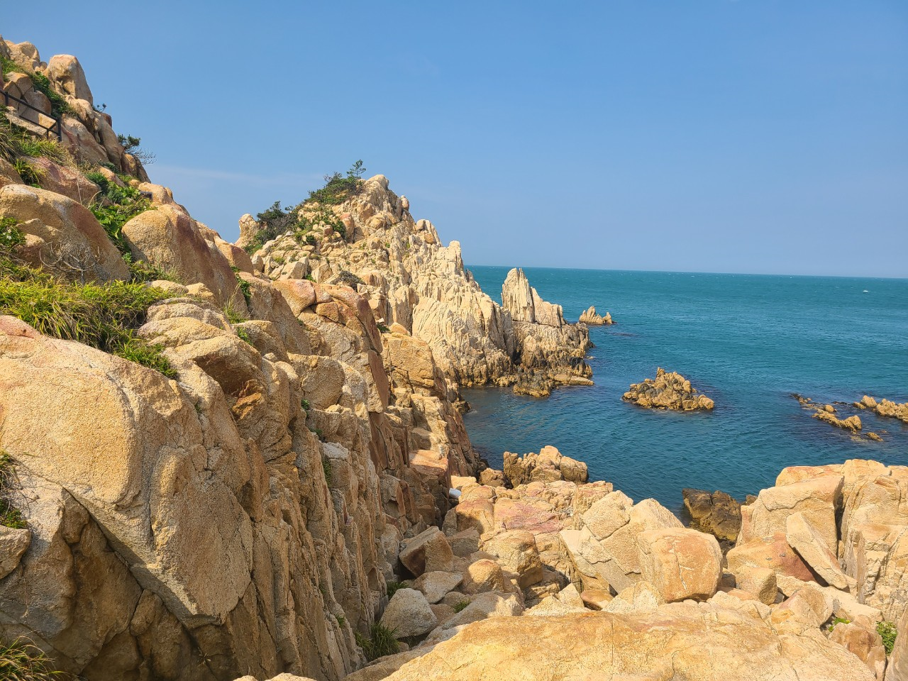 에매랄드빛 바다와 햇빛을 머금은 바위들이 아주 절경입니다.