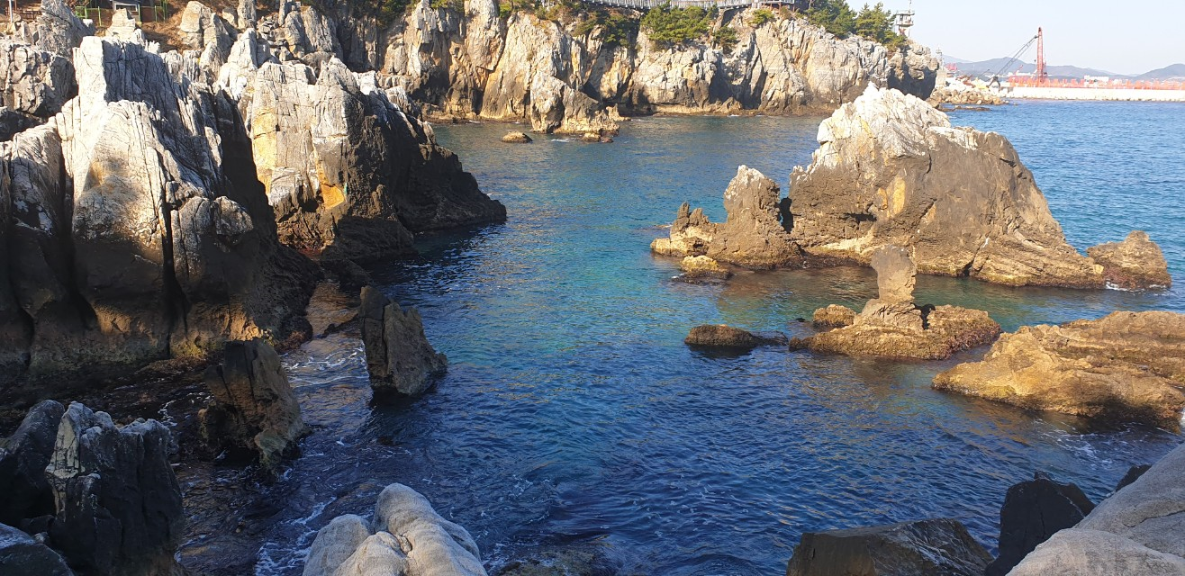 오랜 시간 파도의 마찰로 인해서 바뀐 바위 형상이 참 신비로와요.