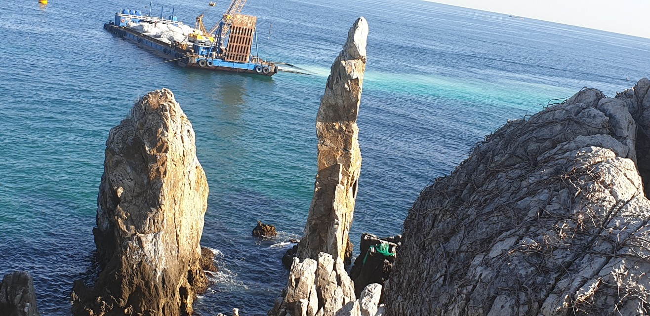 바다를 뚫고 나온 것처럼 솟아있는 것이 신기한 모습입니다.