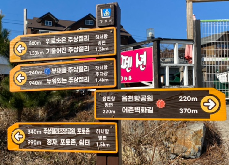 이정표를 보면 주상절리 이름들이 참 흥미로워요.
