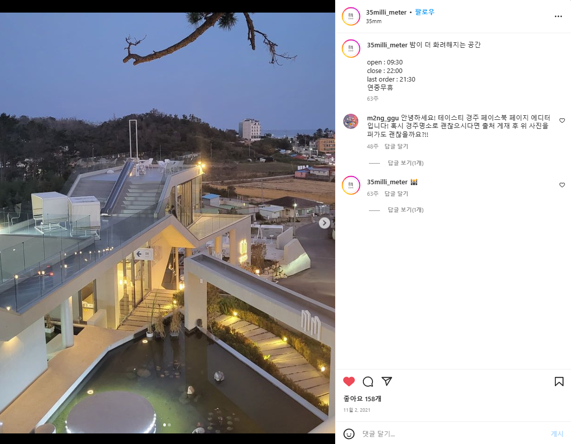 35mm 인스타그램에서 가져온 사진들인데요, 건물 구조가 굉장히 특이하고, 넓으면서 곳곳에 사진 찍을만한 포토존도 있고