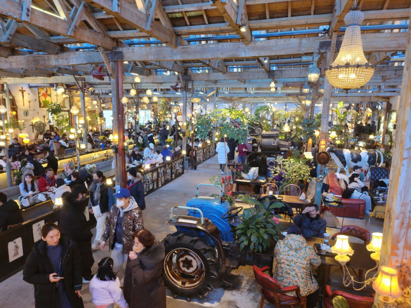 예쁜 조명과 곳곳에 식물들이 보입니다.